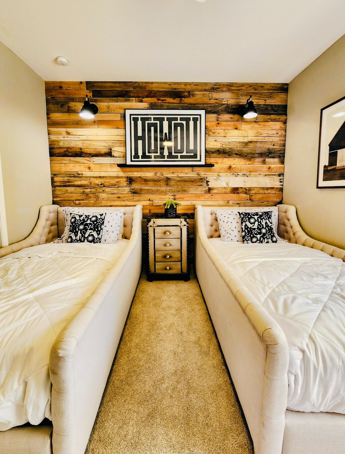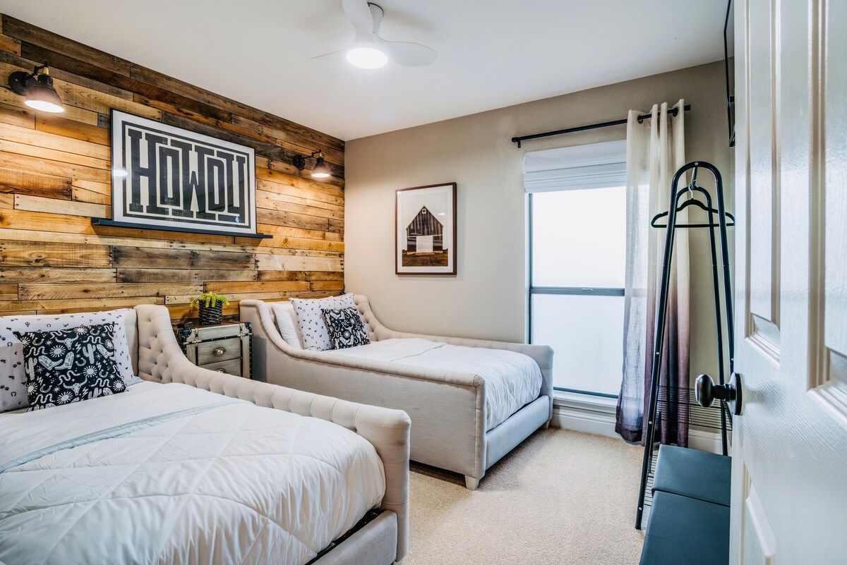 Features two twin beds, a 32” Smart TV, and a ceiling fan for a comfy night’s sleep.